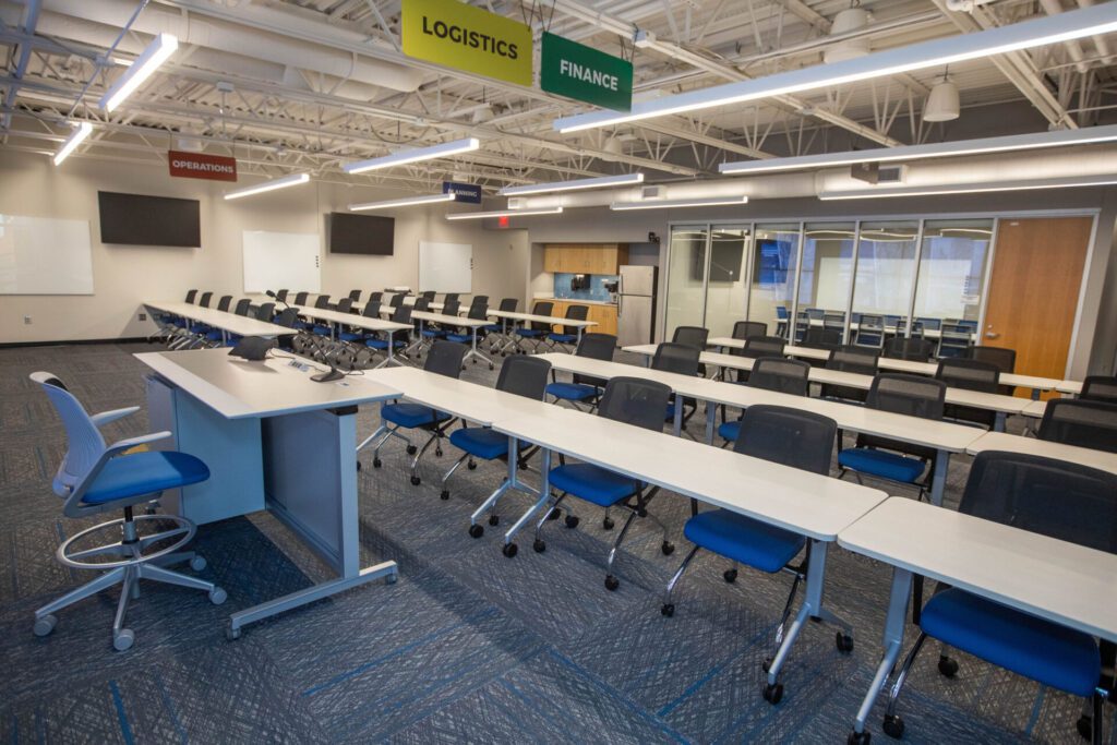 “They’re sitting in this room a long time in some cases, so we wanted to make sure they had very comfortable chairs and adequate space for computers and materials laid out, so they can focus and learn,” Young said.