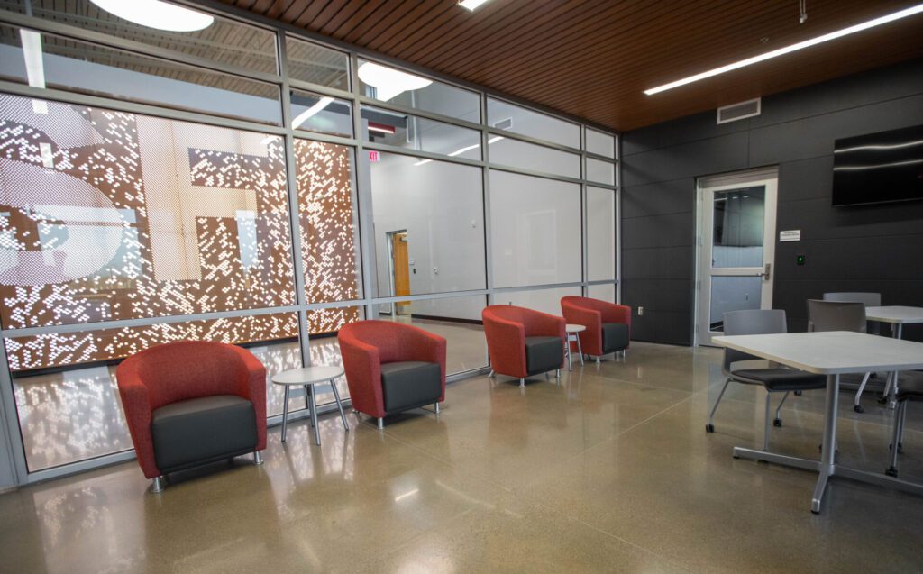 Outside of the administrative building, Interstate also provided furniture in the campus range and maintenance building – “more industrial-type stools for when people are working on weapons or different apparatus of vehicles,” Bofenkamp said.