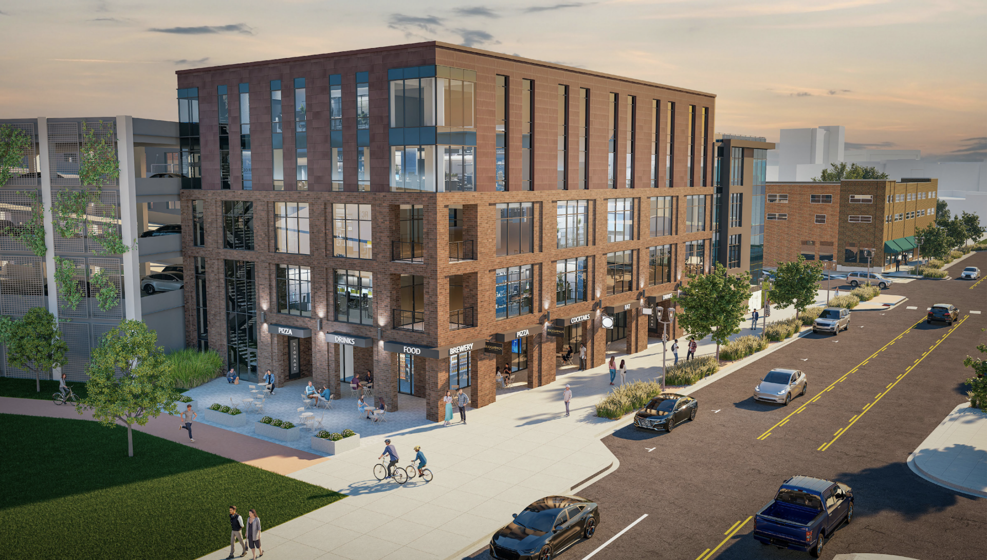The project hasn’t yet been named. The balance of the property is planned as three apartment buildings totaling 233 units and a parking ramp with 180 spaces to support the development.