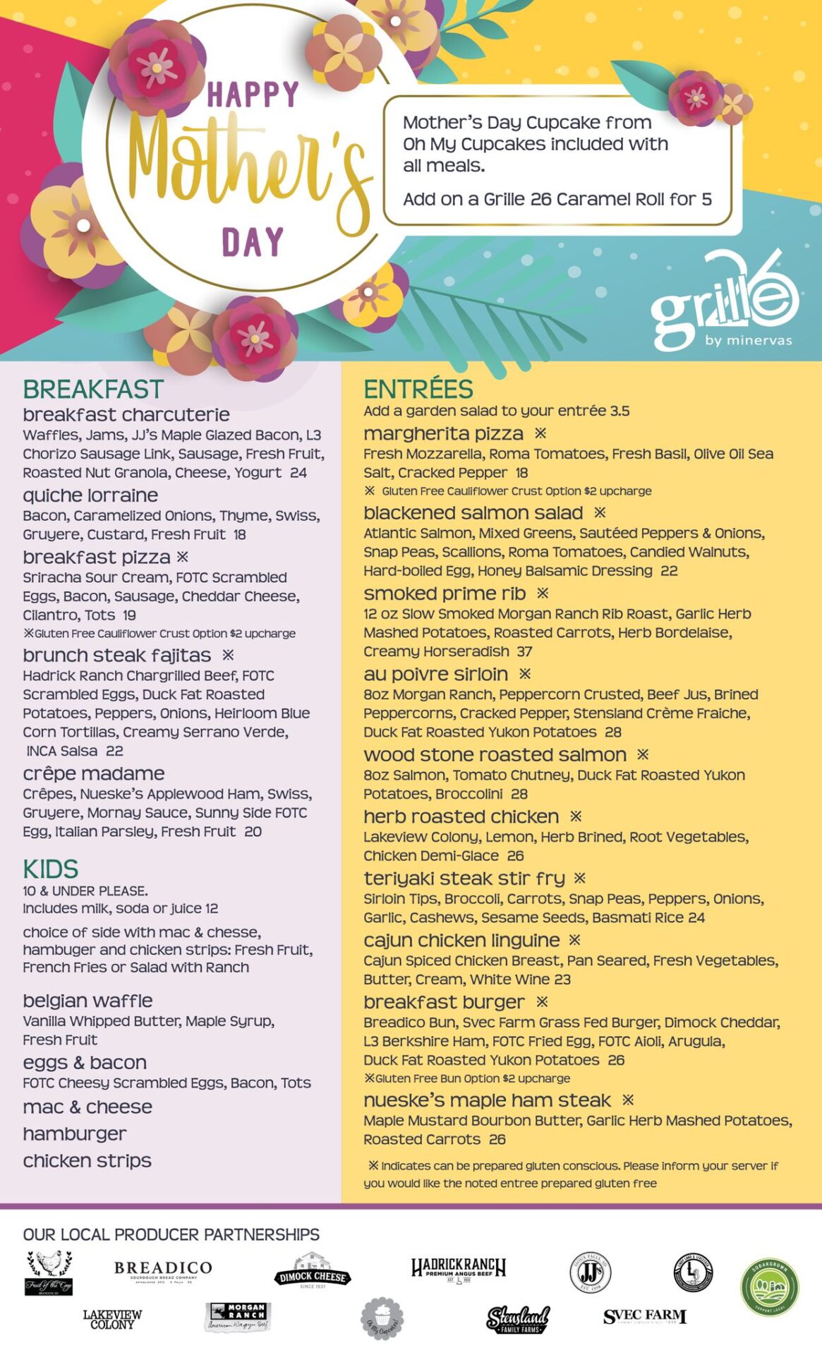 Plus, indulge with a Mother’s Day cupcake from Oh My Cupcakes, included with every meal, and add on a famous Grille 26 caramel roll if you choose.