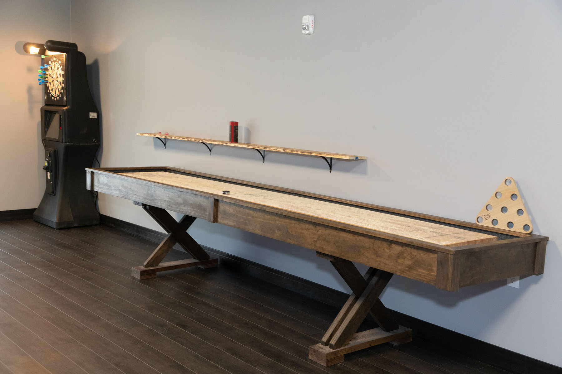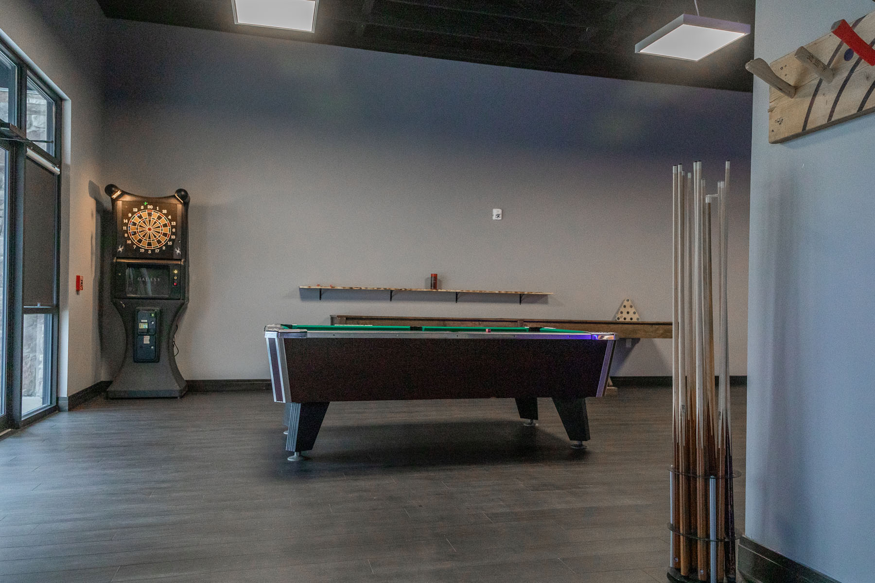 The Gameroom at JJ’s Axes & Ales includes two pool tables, a shuffleboard court, dart boards and video lottery in addition to the ax-throwing lanes.