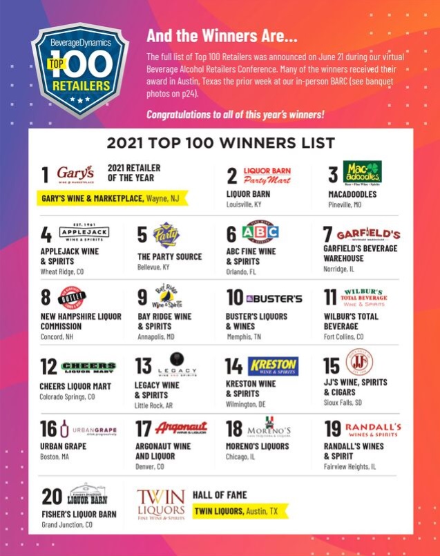 “Literally every adult-beverage retailer in the country gets a copy of this magazine, and we feel they do a good job vetting those who make the top 100 list,” he said.