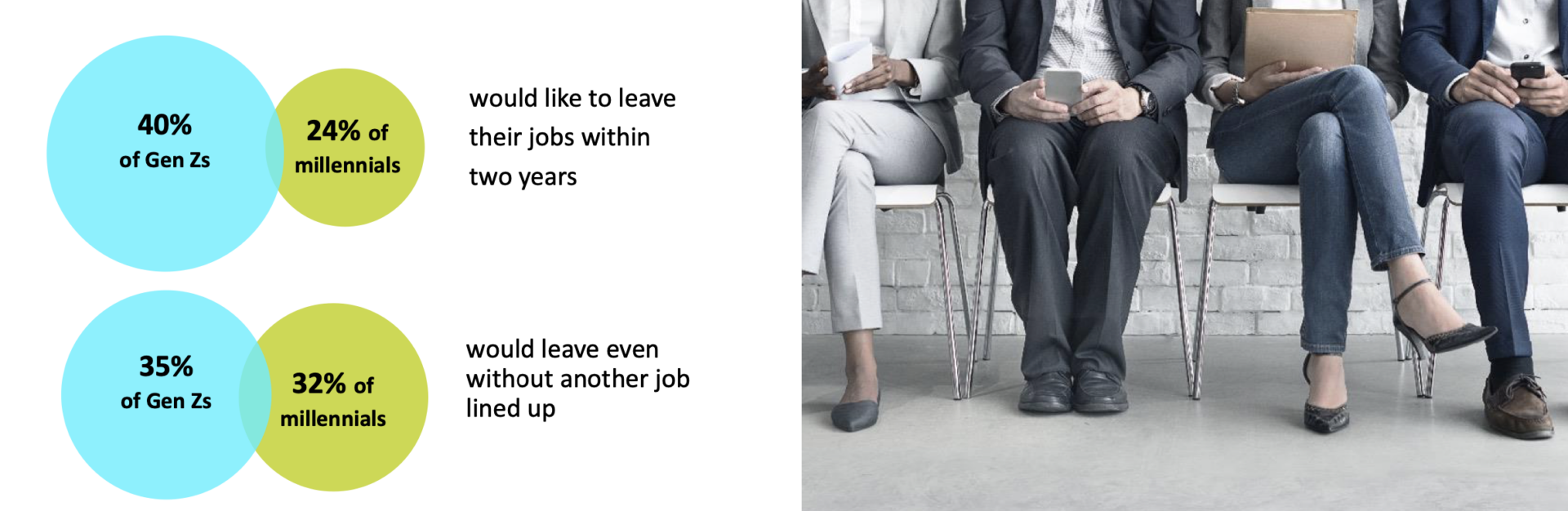 Deloitte’s 2022 Gen Z and Millennial Survey found four in 10 members of Generation Z and nearly one in four millennials globally would like to leave their jobs within two years.