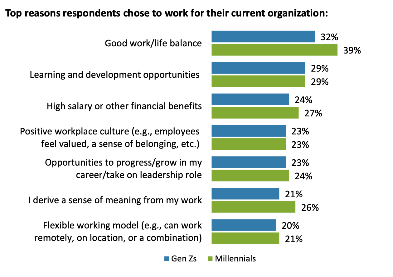 Here’s what participants in the Gen Z and Millennial Survey said keeps them working for an employer: