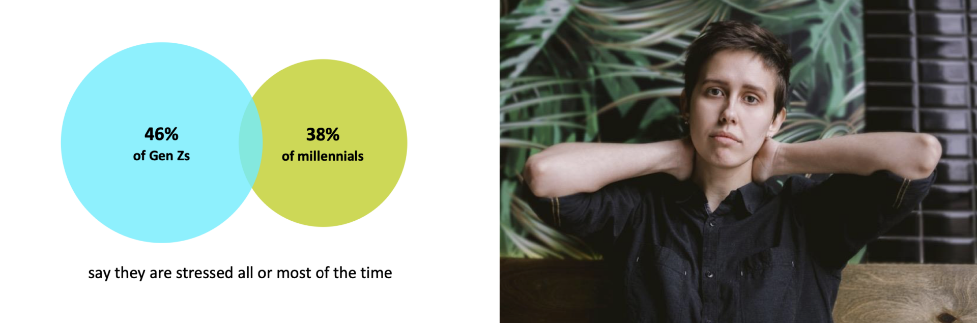 Nearly half of Gen Zs said they feel stressed all or most of the time, the study found. Millennials’ stress levels dropped somewhat year over year, but nearly four in 10 still reported high stress levels. Overall, stress levels are even higher among women.