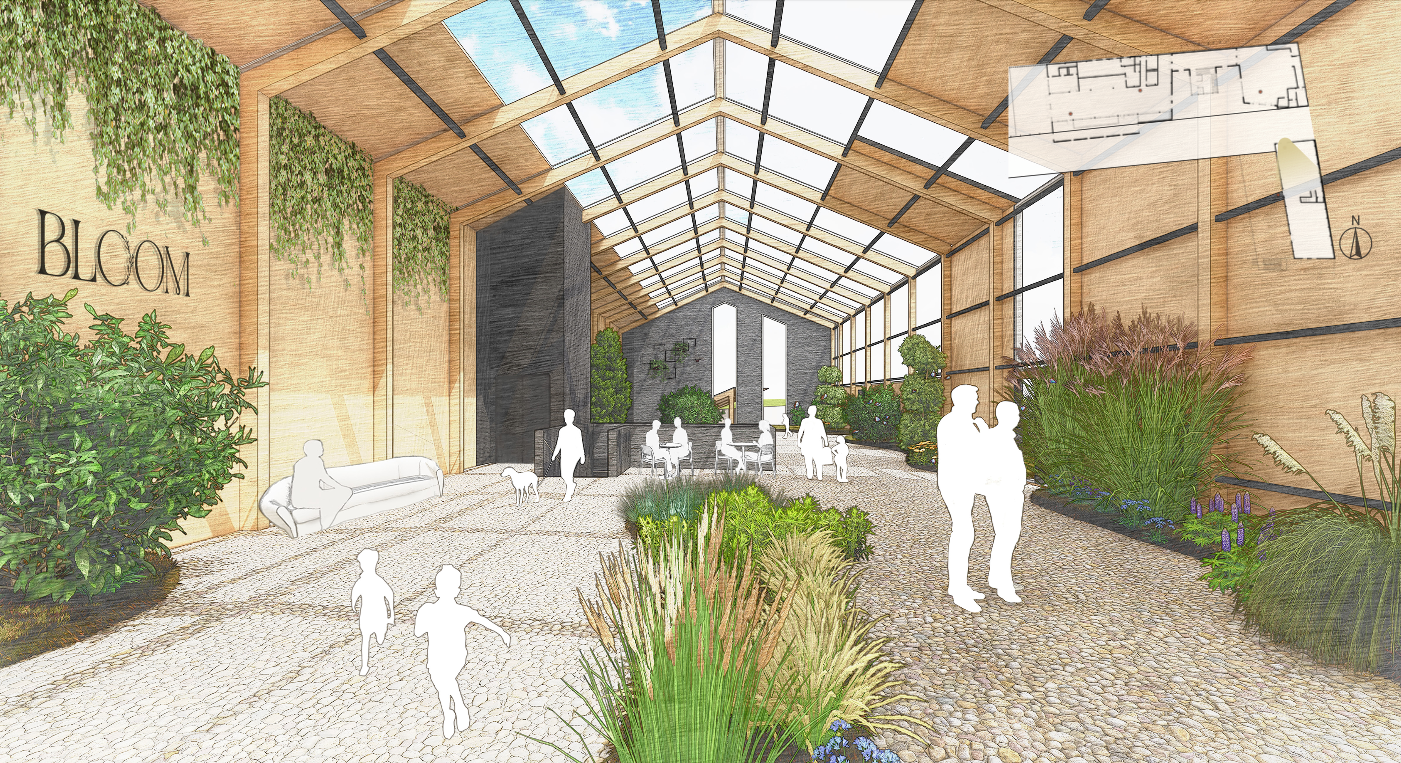 Within the walkway itself and adjacent to it, the students proposed uses such as a restaurant, brewery, market and greenhouse.