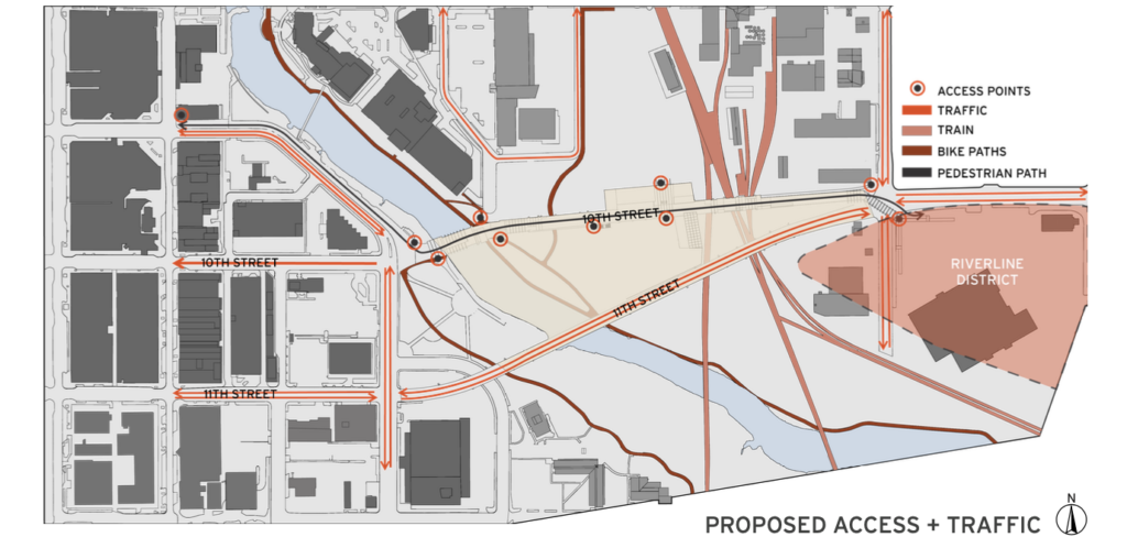 It’s a worthy endeavor. One of the major roadblocks — literally — with the proposed Riverline District, in my opinion, is its connectivity to downtown. You can see downtown from there, but other than with a car, you can’t easily get to it. It doesn’t feel integrated into the rest of downtown because the viaducts serve as such a barrier.