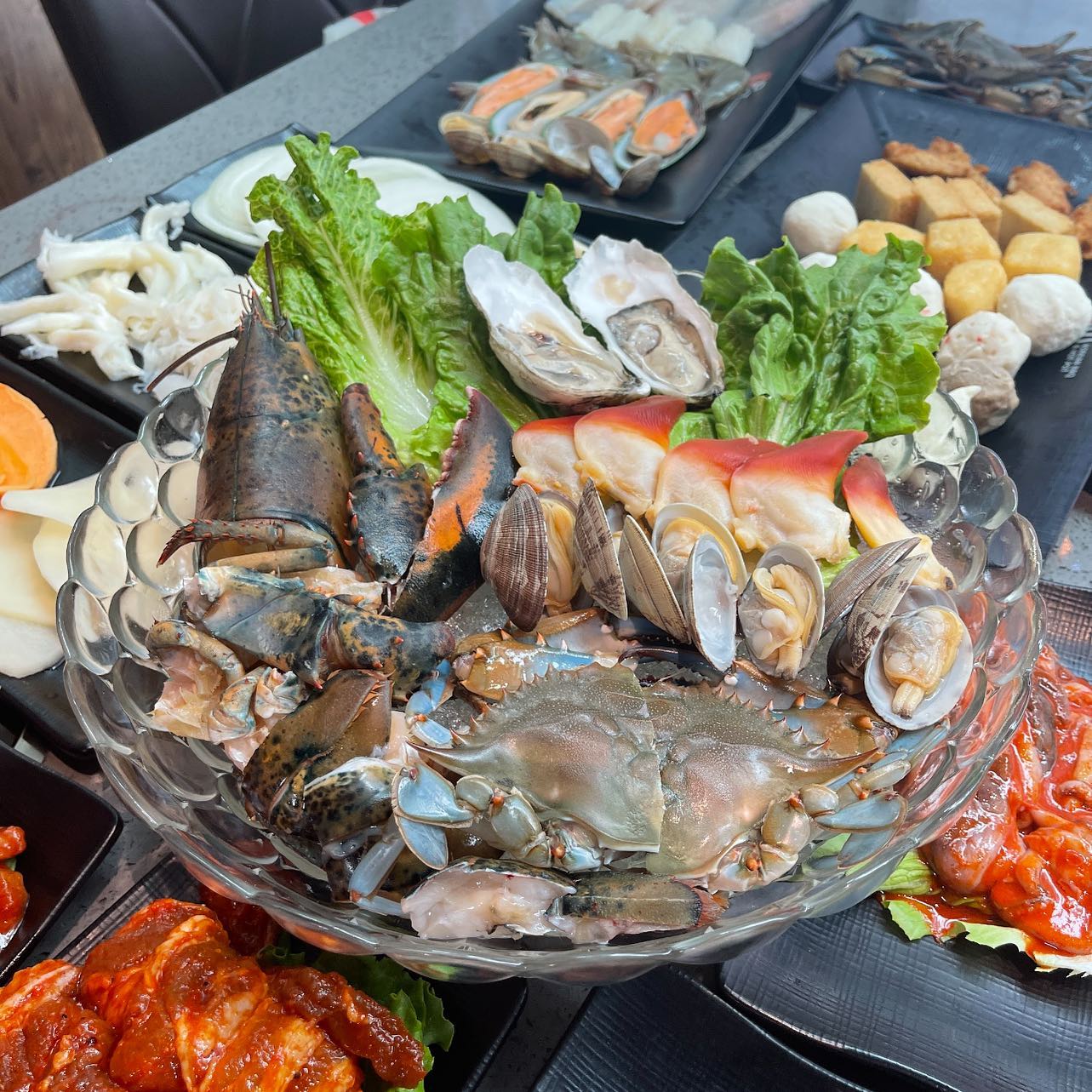 The menu includes seven options for soup bases and a large variety of meats, seafood and sides, from Kobe beef to quail eggs, prime brisket and lobster balls.
