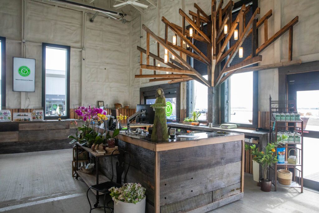 The garden center includes a prominent reuse of part of the old location in the ceiling and other decor. Look closely, and you’ll see the Landscape Garden logo in it.