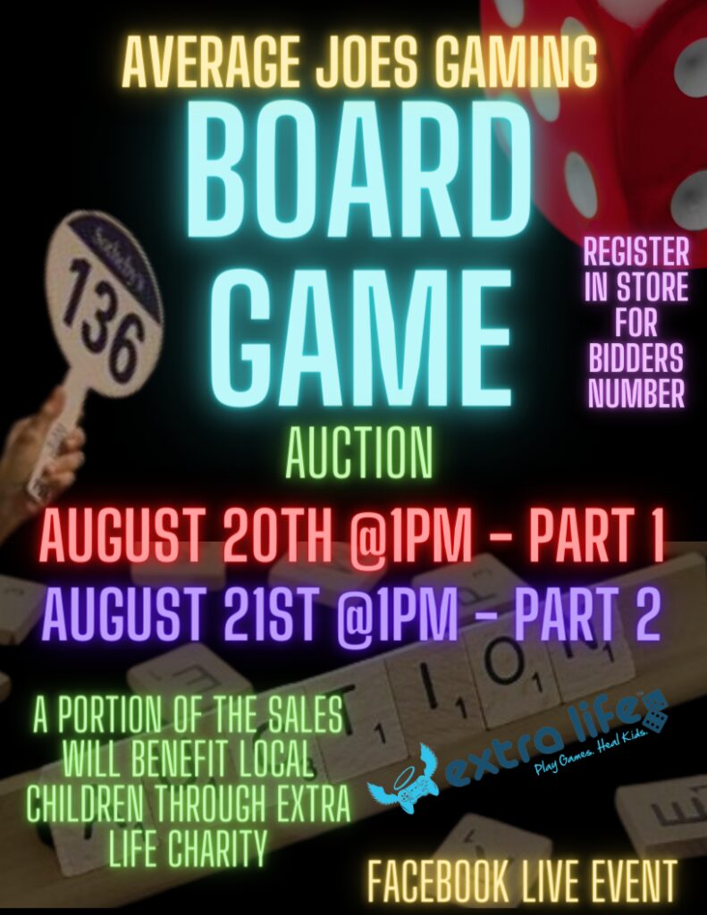 Items will be on sale, and players can still come in and play games for free. There’s also a two-day auction of board games planned Aug. 20-21.