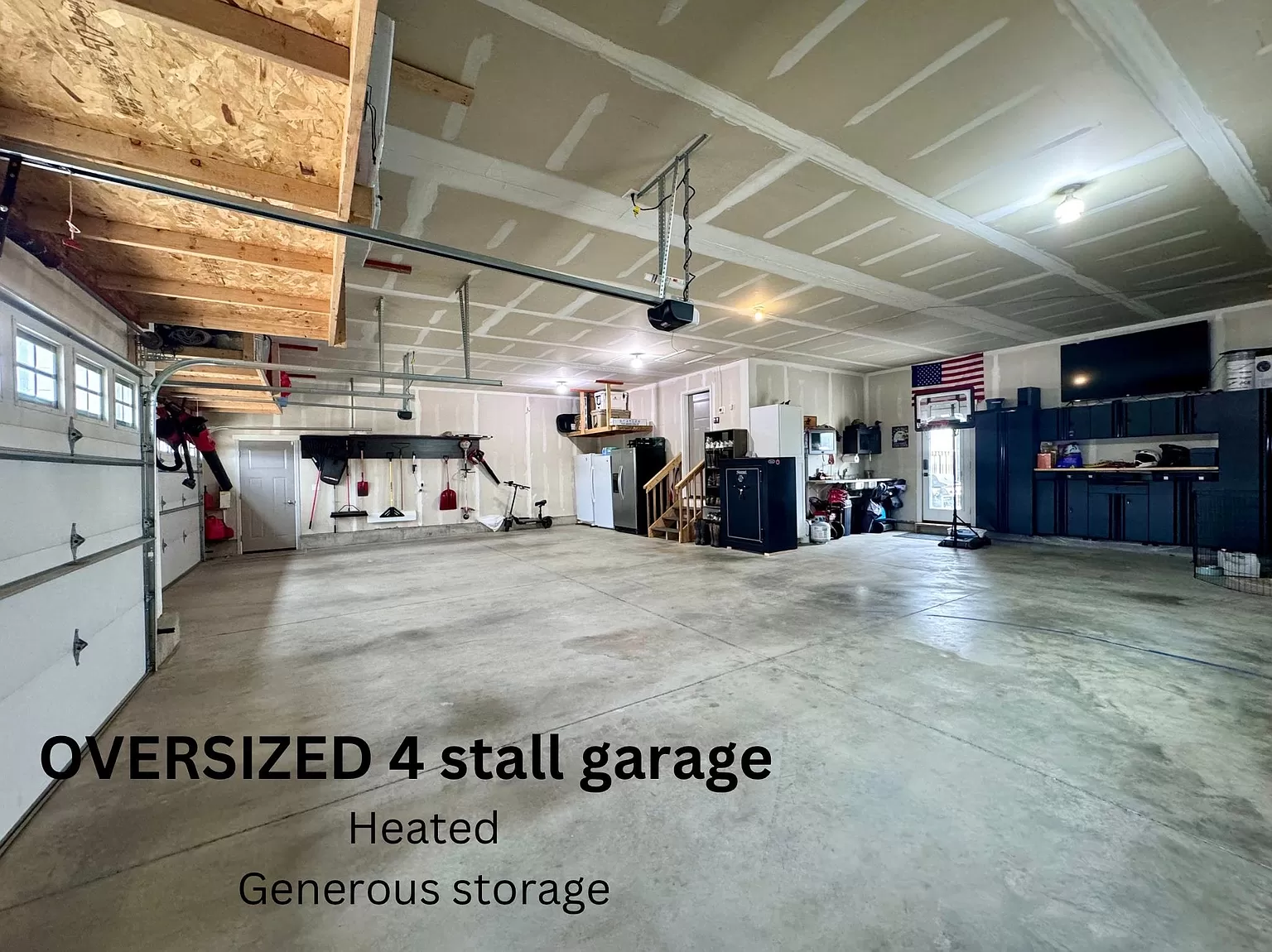“And speaking of storage, the huge, oversized four-stall garage holds all your vehicles and then some.”