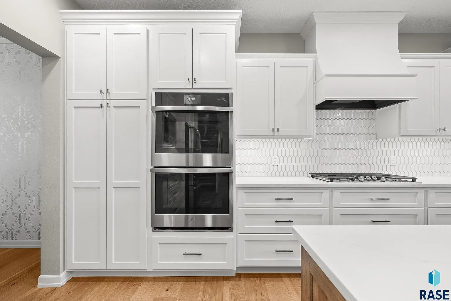 The kitchen features Dakota Kitchen & Bath cabinetry, quartz countertops, a double oven and generous island.