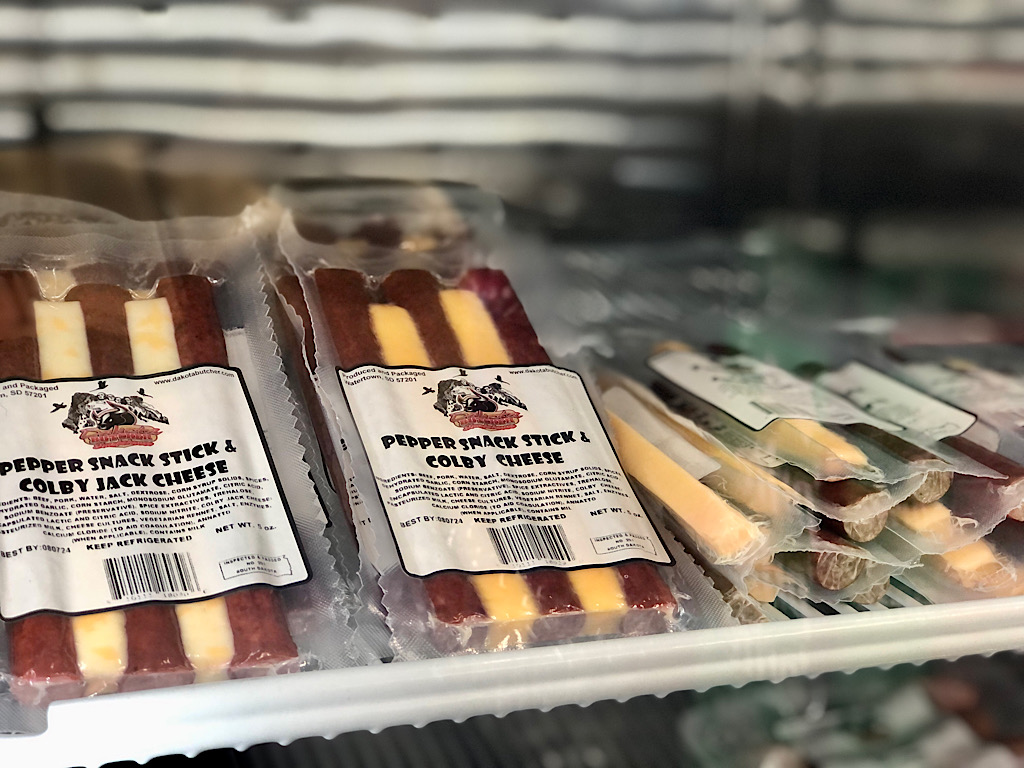 Near the center part of the store, a small freezer and a cooler are stocked with Dakota Butcher steaks, beef sticks and summer sausage.