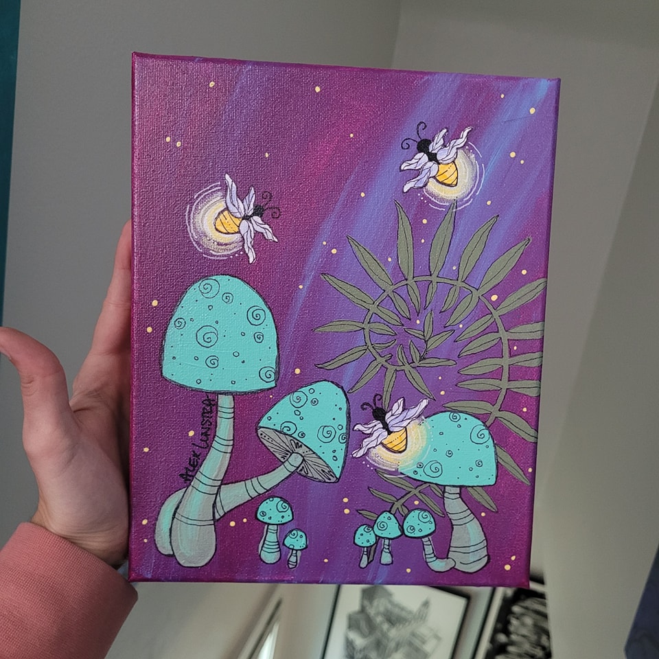 “This summer, I was on a firefly kick, so I’ve got a lot of firefly paintings,” Lunstra said. “My paintings are bright and whimsical, kind of abstract but usually based in nature.”