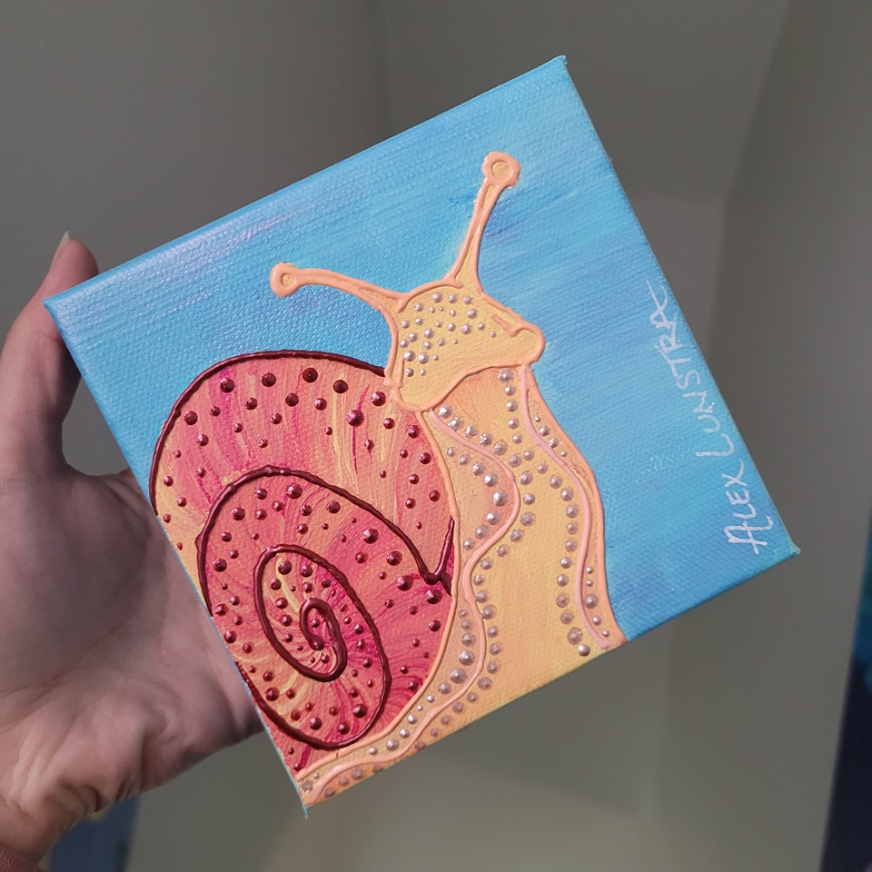 Some of Lunstra’s canvases are as small as 2 inches in diameter while her largest canvas was 4 feet tall. While she likes producing large canvases, Lunstra recognizes some people want to satisfy their need for beauty in their home and workplace but have limited funds.