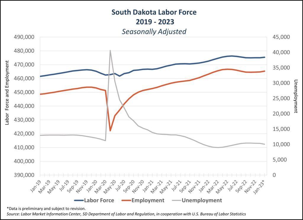 The jobless rate in January was 1.9 percent, down from 2 percent in December, according to statistics from the South Dakota Department of Labor & Regulation. February’s numbers will be available later this month.