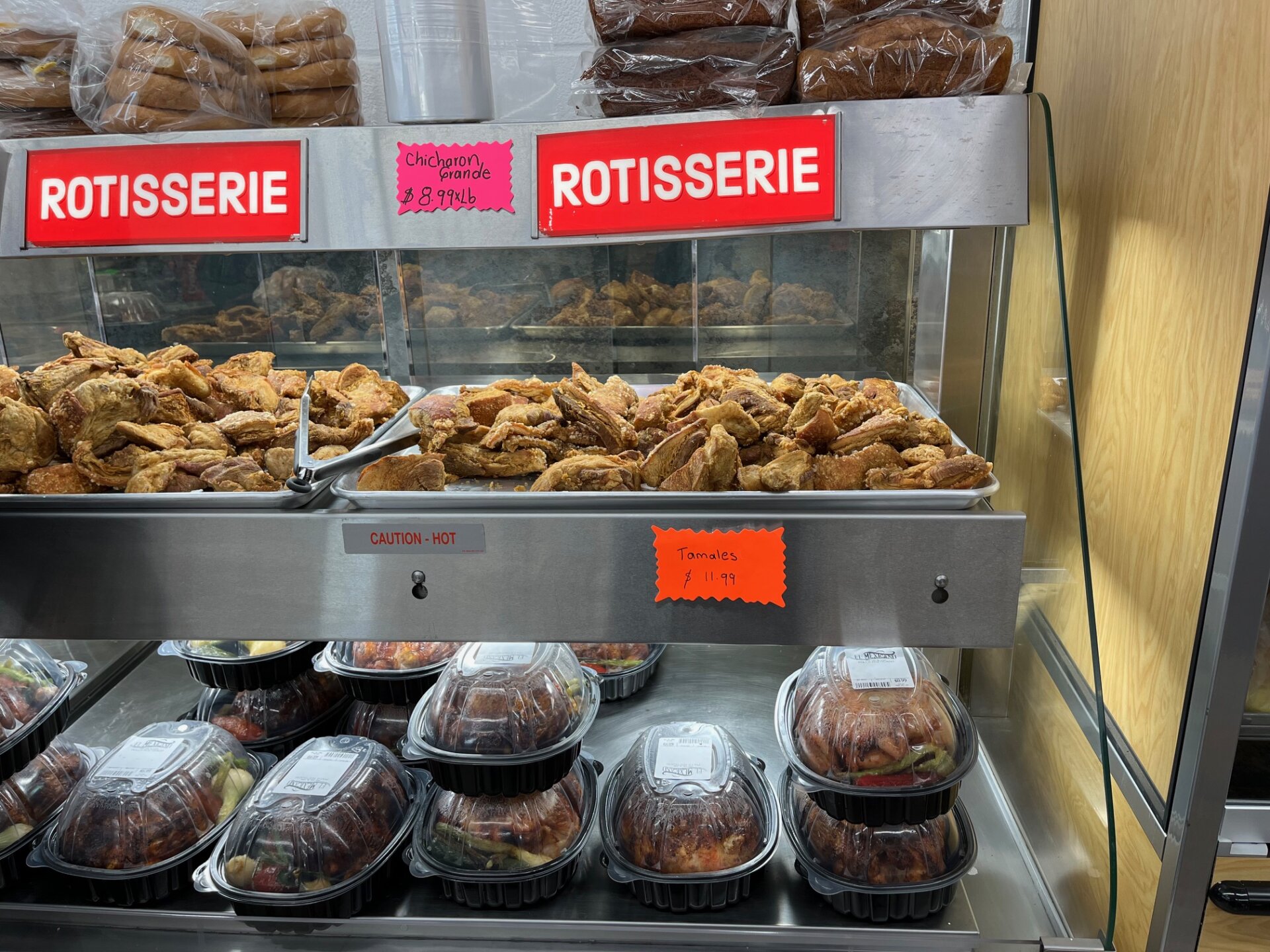 It has a selection of grab-and-go foods such as carnitas in pork and chicken, tamales, chicharrons and rotisserie chicken. All items are prepared in the tienda, or store, said Randy Patino, Efrain Patino’s son. Other homemade items include guacamole, salsa, rice and beans.