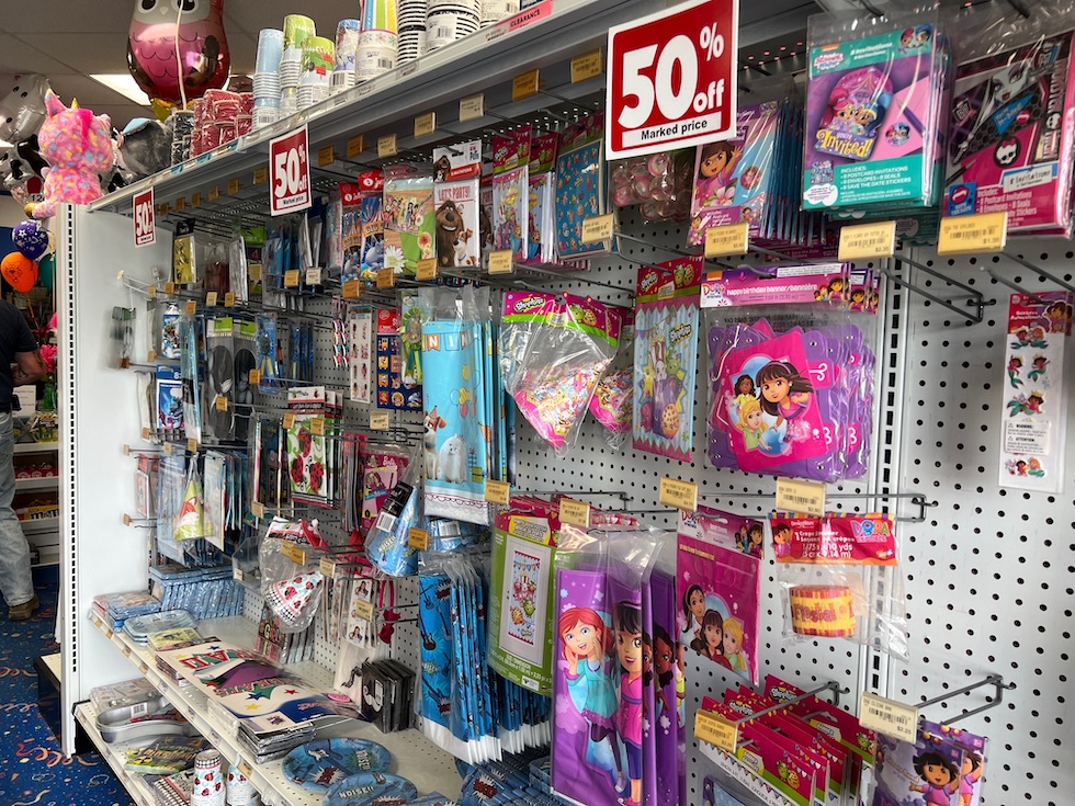 Supplies are available for kid and adult birthday parties, weddings, showers, religious events and sports celebrations.