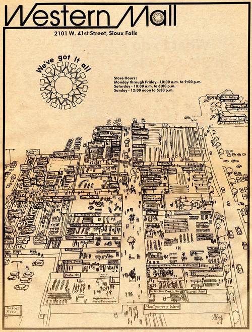 When it opened in 1968, the Western Mall was the first enclosed regional shopping mall in the state, built on land that used to be Sioux Skyways Airport.