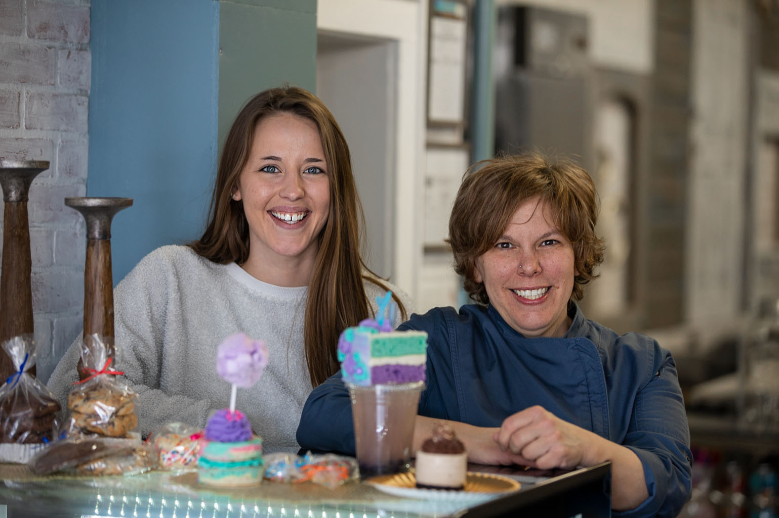 There’s the “Big Blue Sioux ” with blue and purple velvet cake and the “Prairie Sunset” with peach and pink velvet and vanilla.