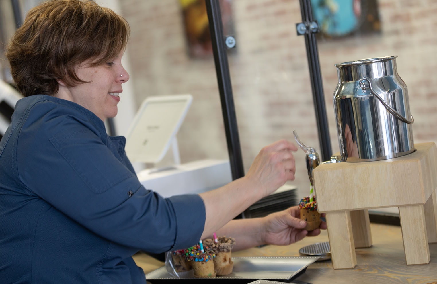 “If you’ve had a rough day, you can get a stiff shot of milk,” she said.