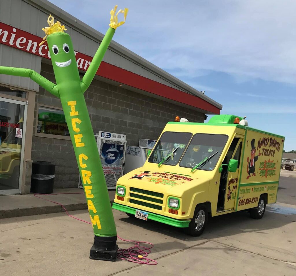 The traveling ice cream truck, nicknamed “Clyde” covers 30 towns in South Dakota and Minnesota, including Garretson. Scott and Debbie Handberg of Ward started Monkey Business Treats in 2015. In addition to driving through neighborhoods, they fill their schedule with public and private events. Locations are posted on Facebook. Monkey Business Treats serves more than 50 varieties of frozen treats, hand-dipped root beer floats and frozen treats for dogs. Some treats are dairy-free, gluten-free or tree nut-free.