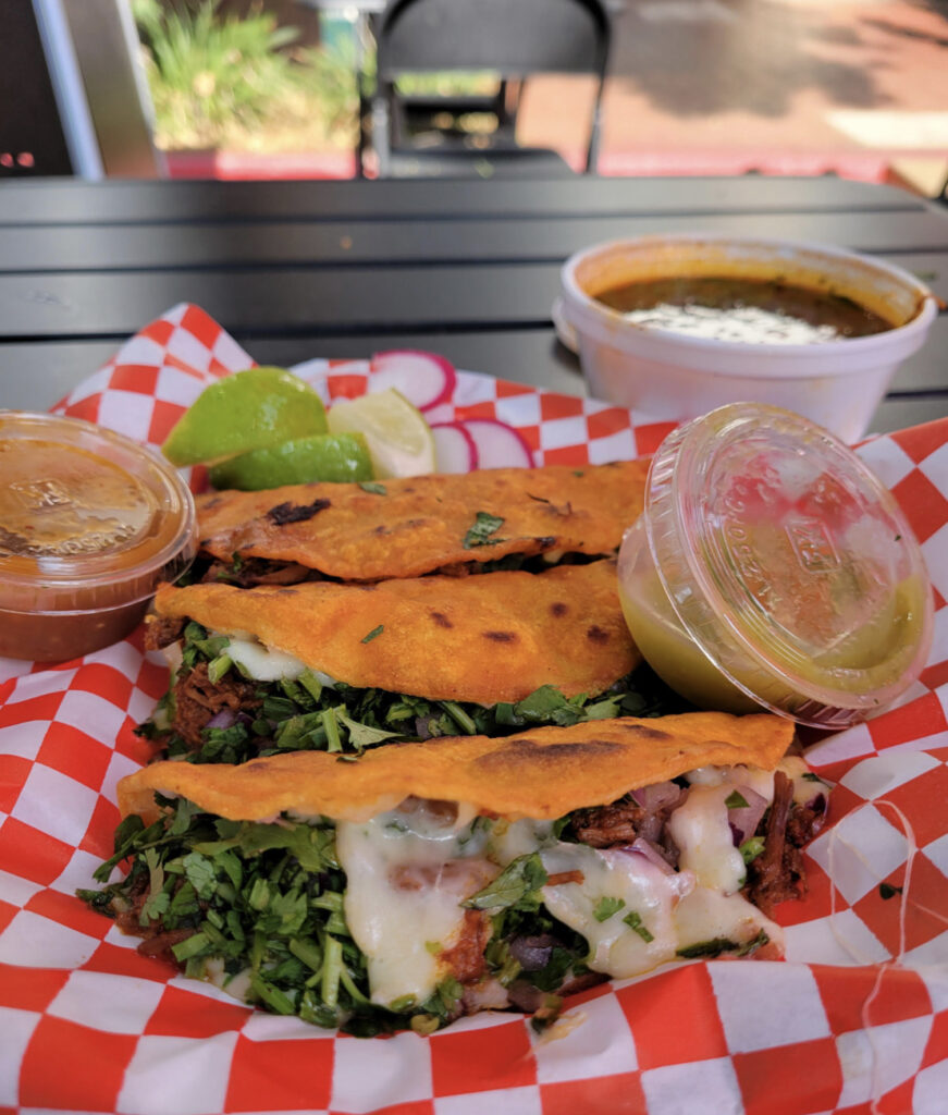 Ricardo Gonzalez, who grew up in the state of Zacatecas in central Mexico, is back for his second year with Taqueria Gonzalez. It’s based in the parking lot of Food-N-Fuel at 100 N. Kiwanis Ave. with a couple of picnic tables for dining and is open from 11 a.m. to 9 p.m. Tuesday through Sunday. Along with the usual tacos, burritos, quesadillas and quesabirria, Gonzalez makes mulitas and vampiritos, or “little vampires.” Mulitas starts with a fried corn tortilla that’s topped with melted cheese, choice of meat, onion, avocado and cilantro. The “vampire” is two corn tortillas grilled with melted cheese, choice of meat, avocado and cilantro. Gonzalez also serves hamburgers topped with more meats and hot dogs wrapped in bacon. Taqueria Gonzalez is available for public and private events. Find updates on its Facebook page.