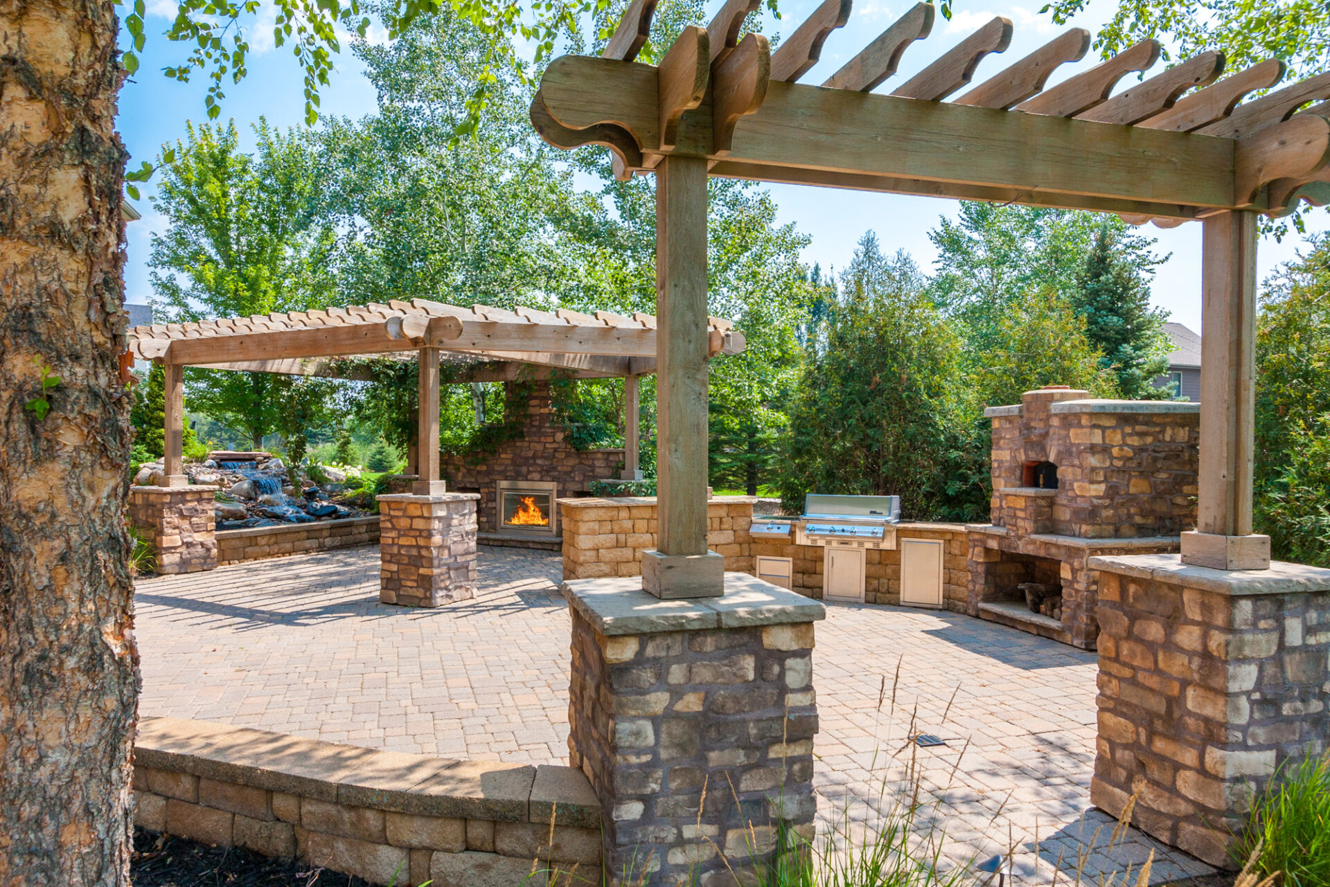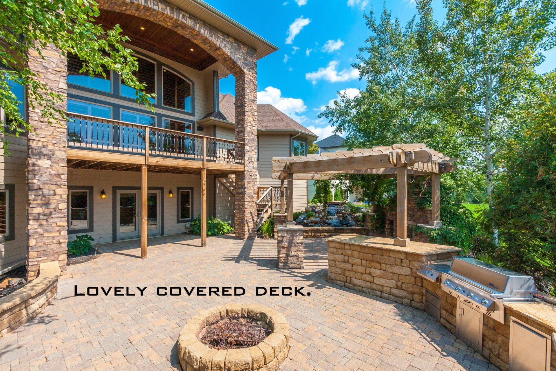 Plus, bask on the covered deck or a 1,351-square-foot paver patio with an outdoor kitchen, pizza oven and gas fireplace.