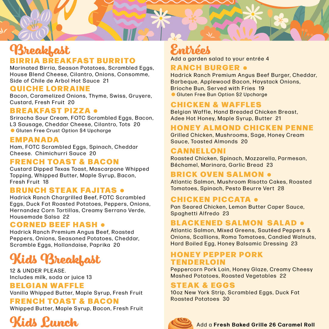 Feel like eating a lunch dish instead? Grille 26 favorites such as honey almond chicken penne, brick oven salmon and the honey pepper pork tenderloin are among the entrees offered this Easter.