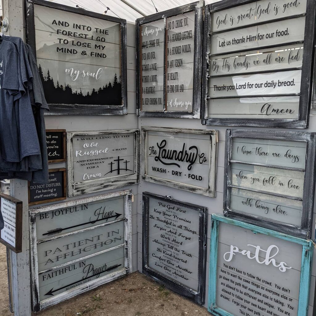 “I got that passion later in life,” she said. “I always loved vintage campers, so I redid those, and then just one day I saw something on Pinterest and thought, ‘I can do something like that.’ And I just started on my kitchen counter making signs.”