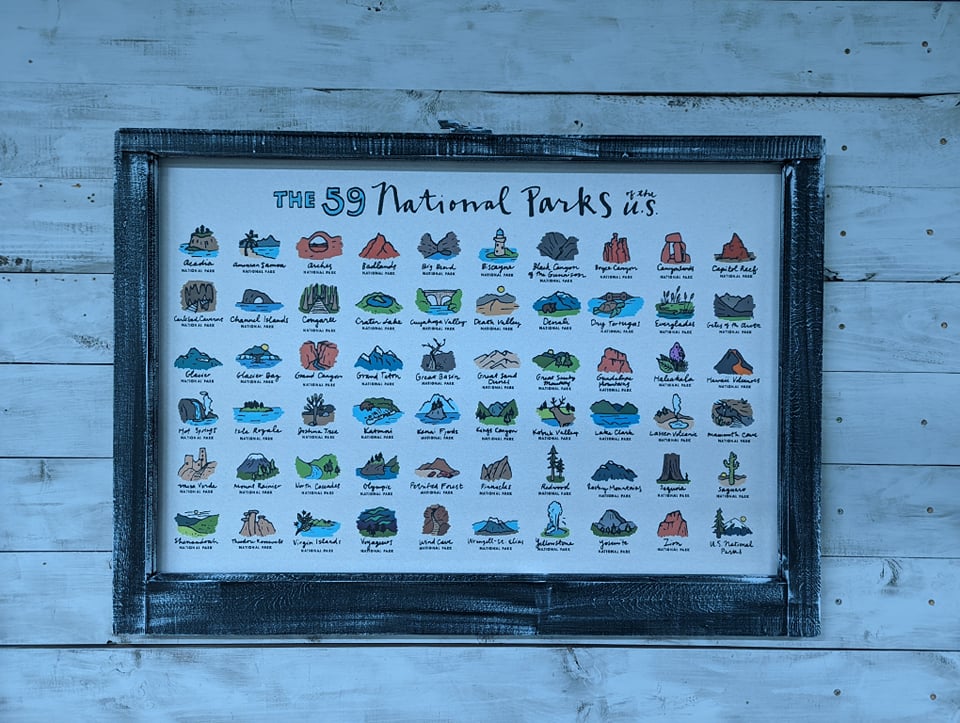 Her newest line is printed on canvas. It includes a variety of sayings and a fun design featuring all the national parks.