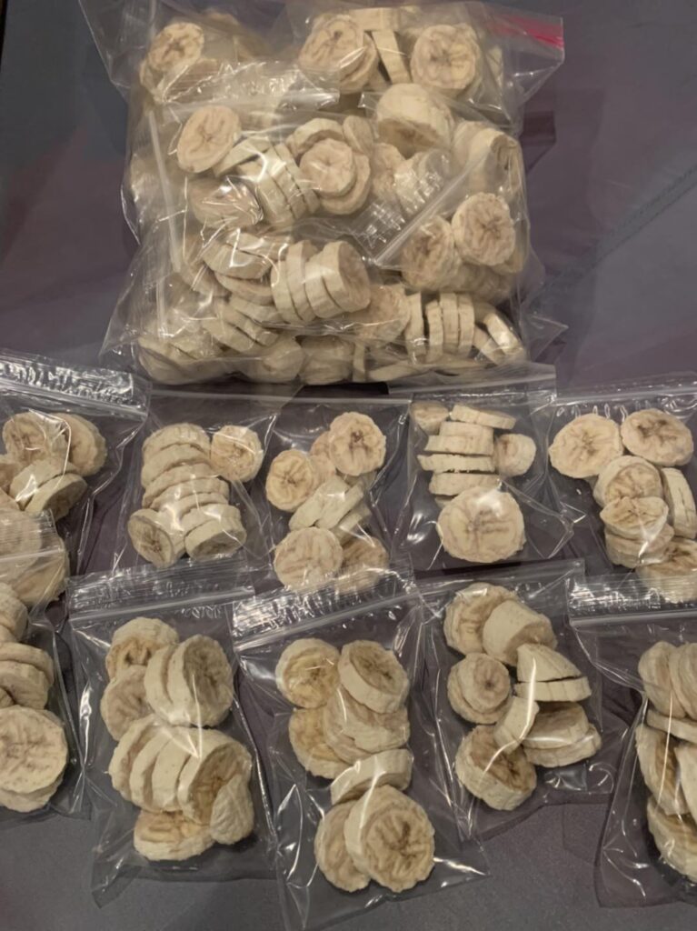 The family loves the freeze-dried banana chips, she said. “They’re not as hard as dried. They’re more like the texture of popcorn.”