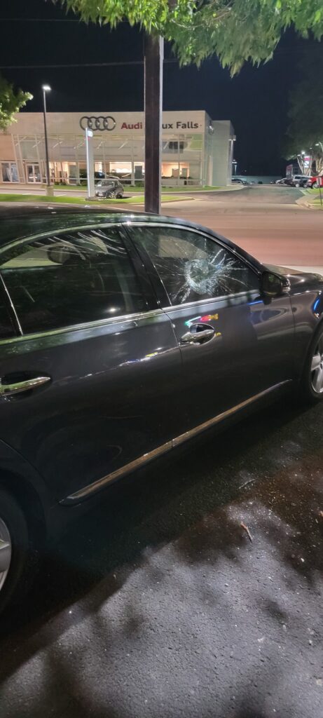 A Rapid City man is accused of smashing several vehicles with an ax Tuesday night in the Graham Automotive parking lot, causing over $100,000 in damages, Sioux Falls police said.