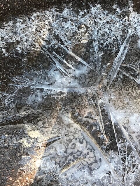 And because winter wasn’t quite over, check out this pattern in this ice after a truck was driven over it.
