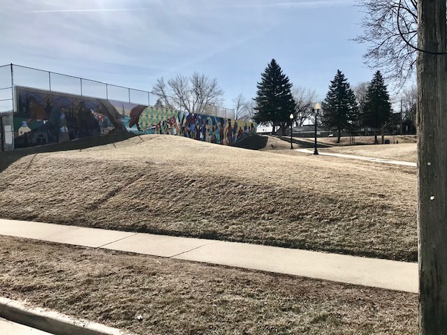 The mural at Meldrum Park provides a splash of color before the grass turns green.