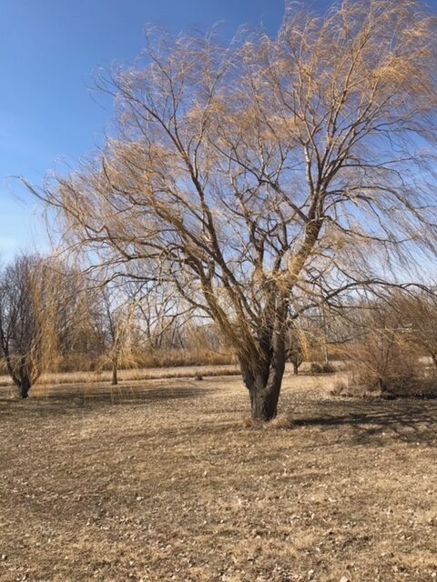 Between the blue sky and a hint of yellow on the willow tree, it looks like spring is trying to break through.