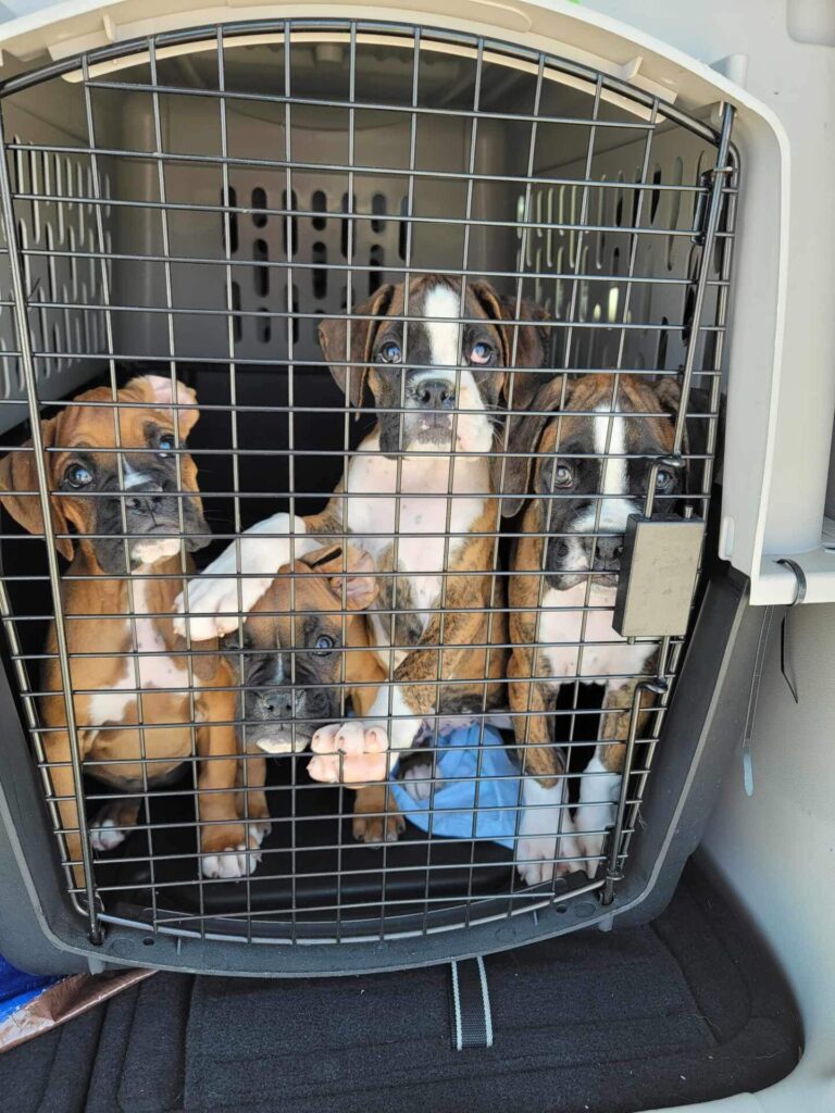 A litter of boxer puppies from the “Raise the Woof” rescue.