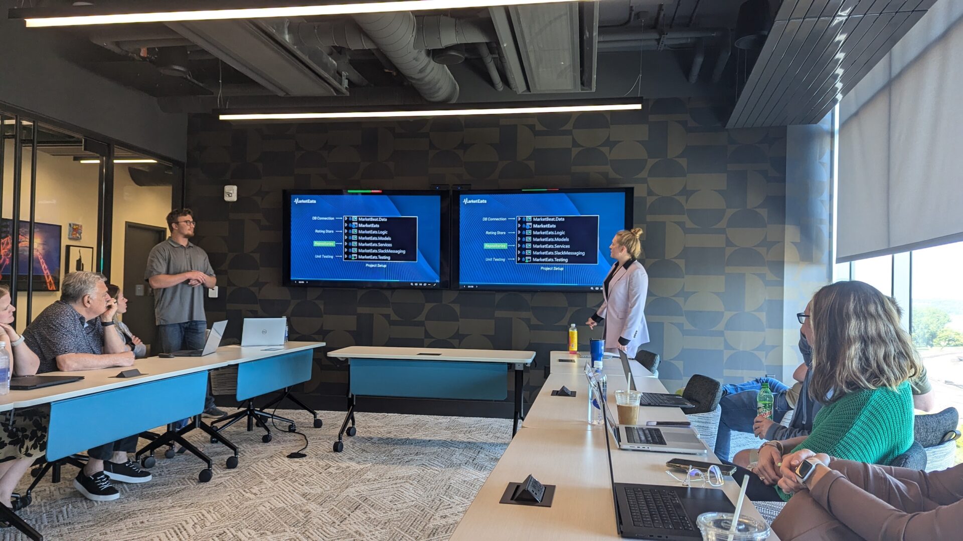 Both interns received plenty of hands-on experience with coding, web and software development and task management through their summer project building MarketEats. This fun, internal project optimized the office lunch ordering process. The interns were able to use their coding and software development skills to create a user-friendly system to help automate meal selection and track preferences, enhancing the overall efficiency of the ordering process.