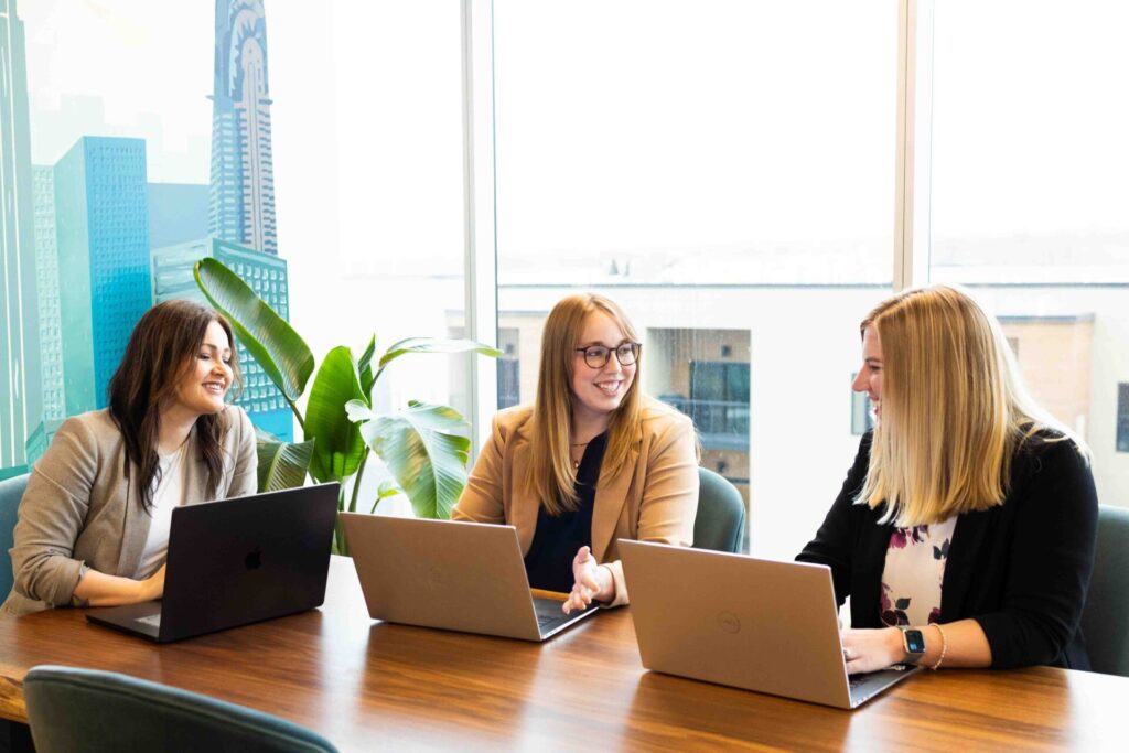 Alix Andal, Bekah Van Maanen and Liz Schiefen meet to discuss MarketBeat website improvements.