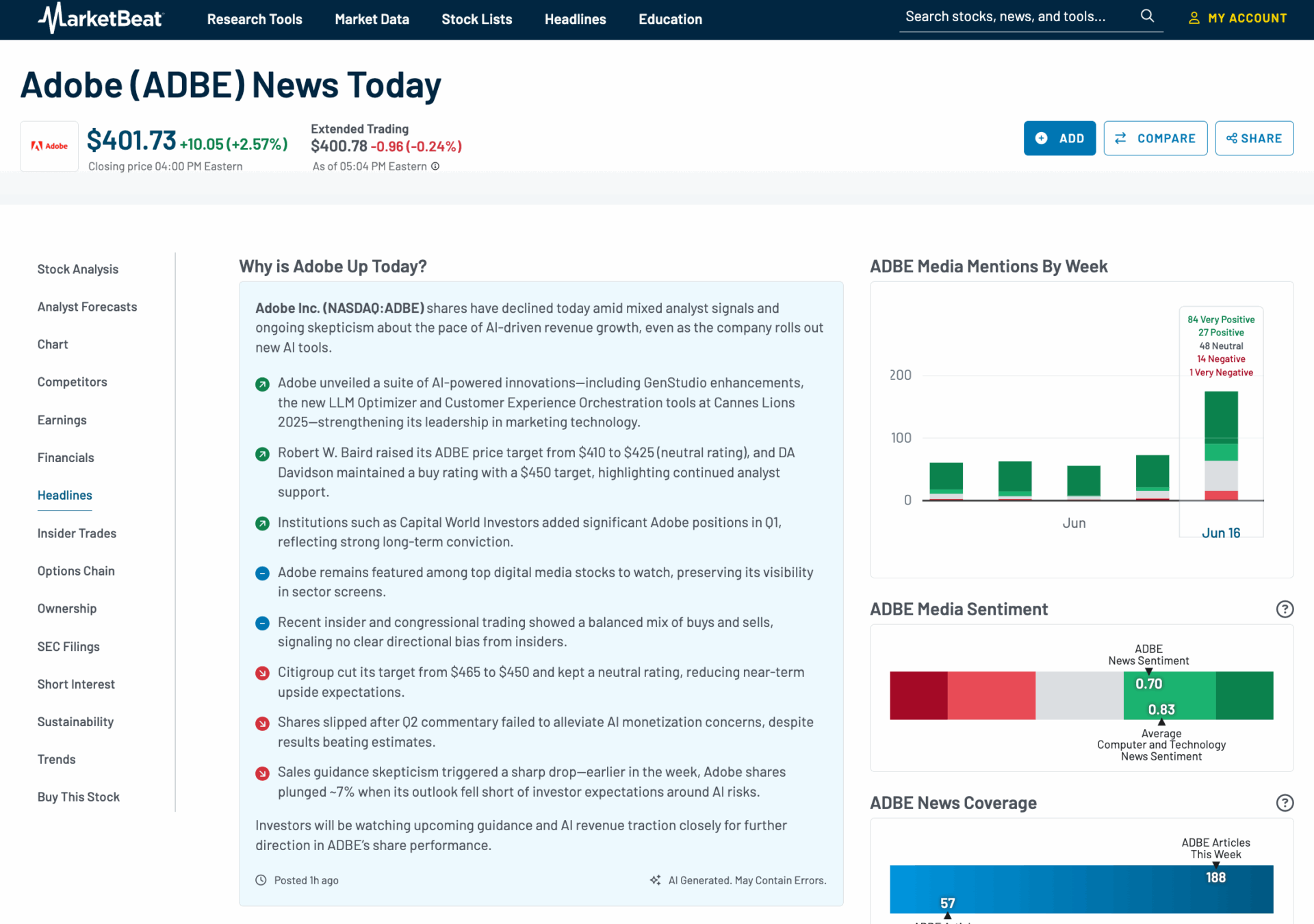 Also in the works is a new AI analysis tab that will combine MarketBeat’s structured market data with AI-generated context to give investors a clearer view of how a stock is performing and why. By pulling in recent headlines, performance metrics and key developments, the page will highlight what has changed and what to pay attention to — all in one streamlined experience.