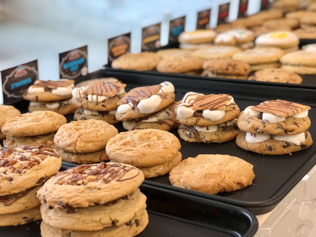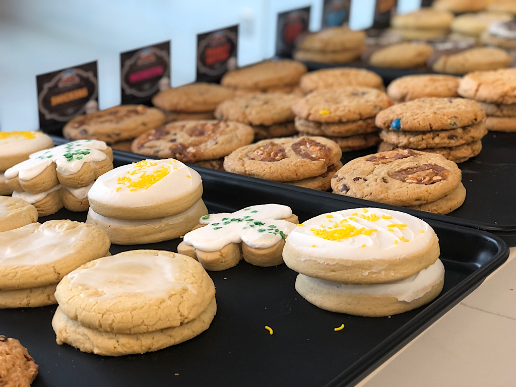 The new location offers almost two dozen flavors of cookies, including seasonal features, plus hand-scooped ice cream, cookie ice cream sandwiches and decorated cookie cakes.
