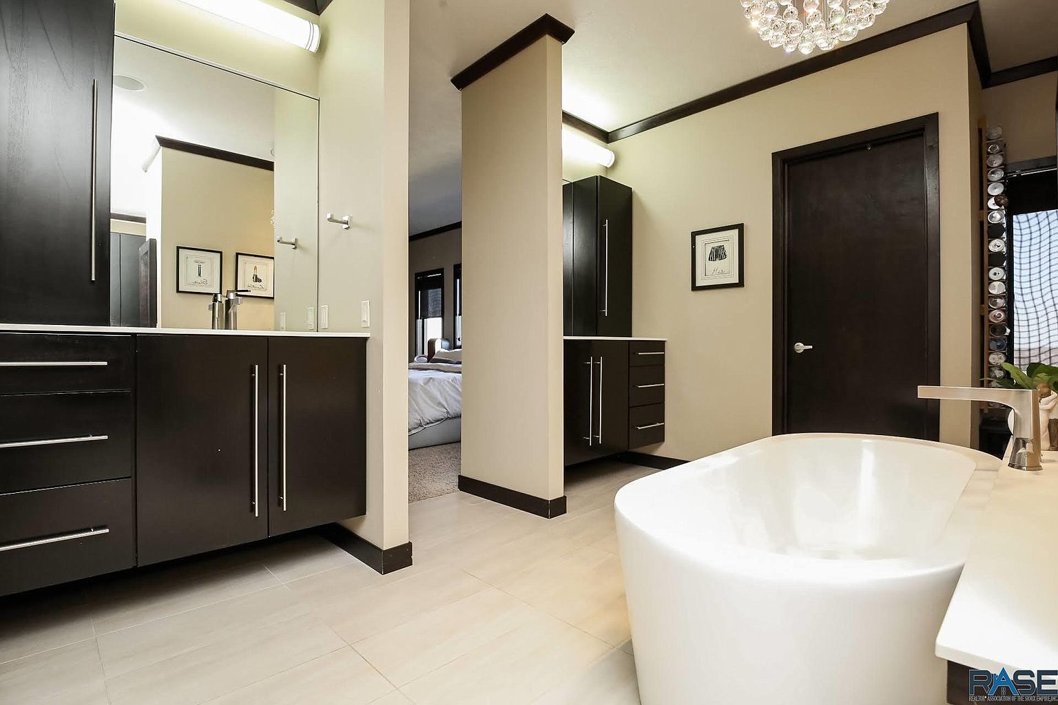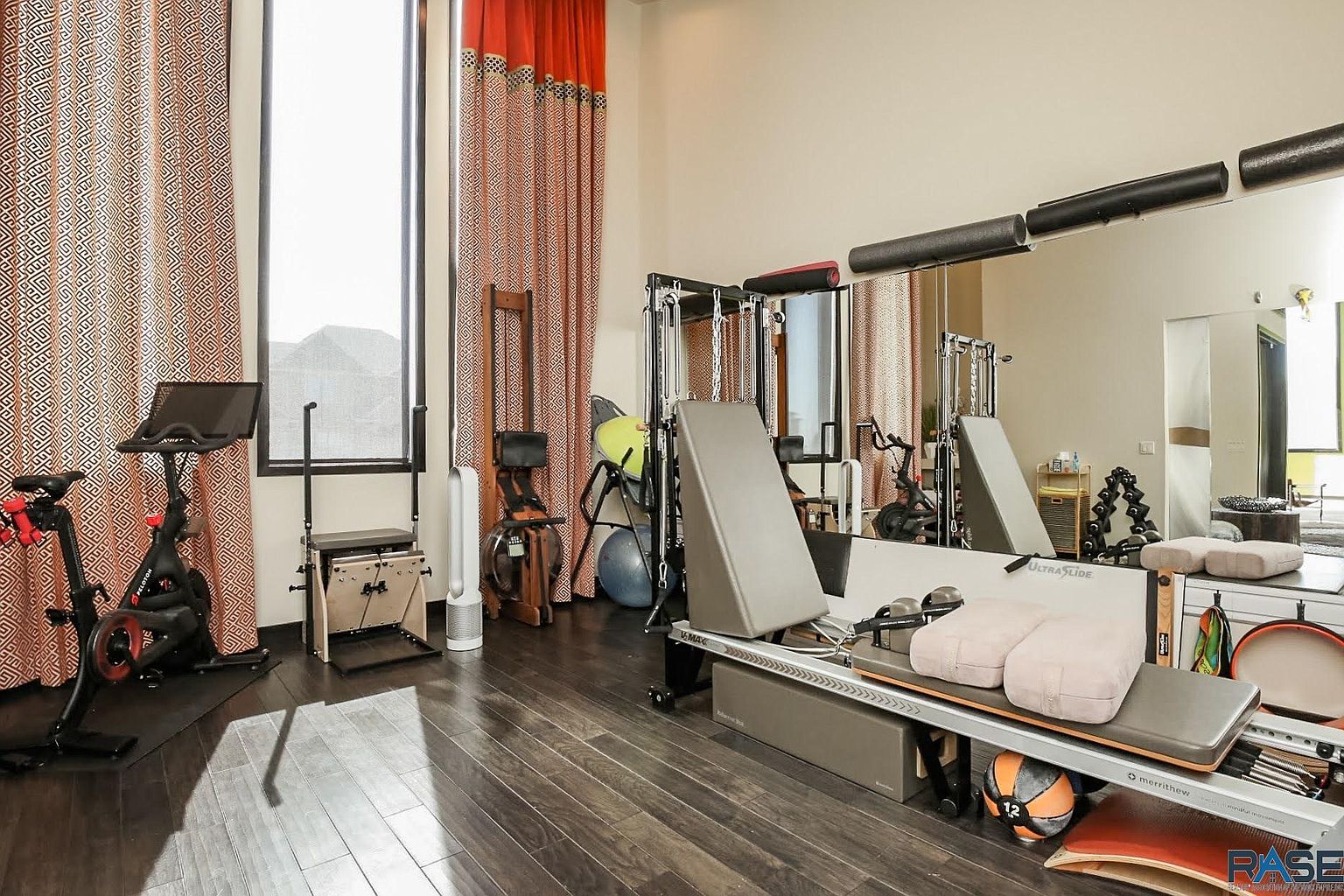 Original artwork by Robert Bruce is featured on the sliding doors to the office and fitness studio.