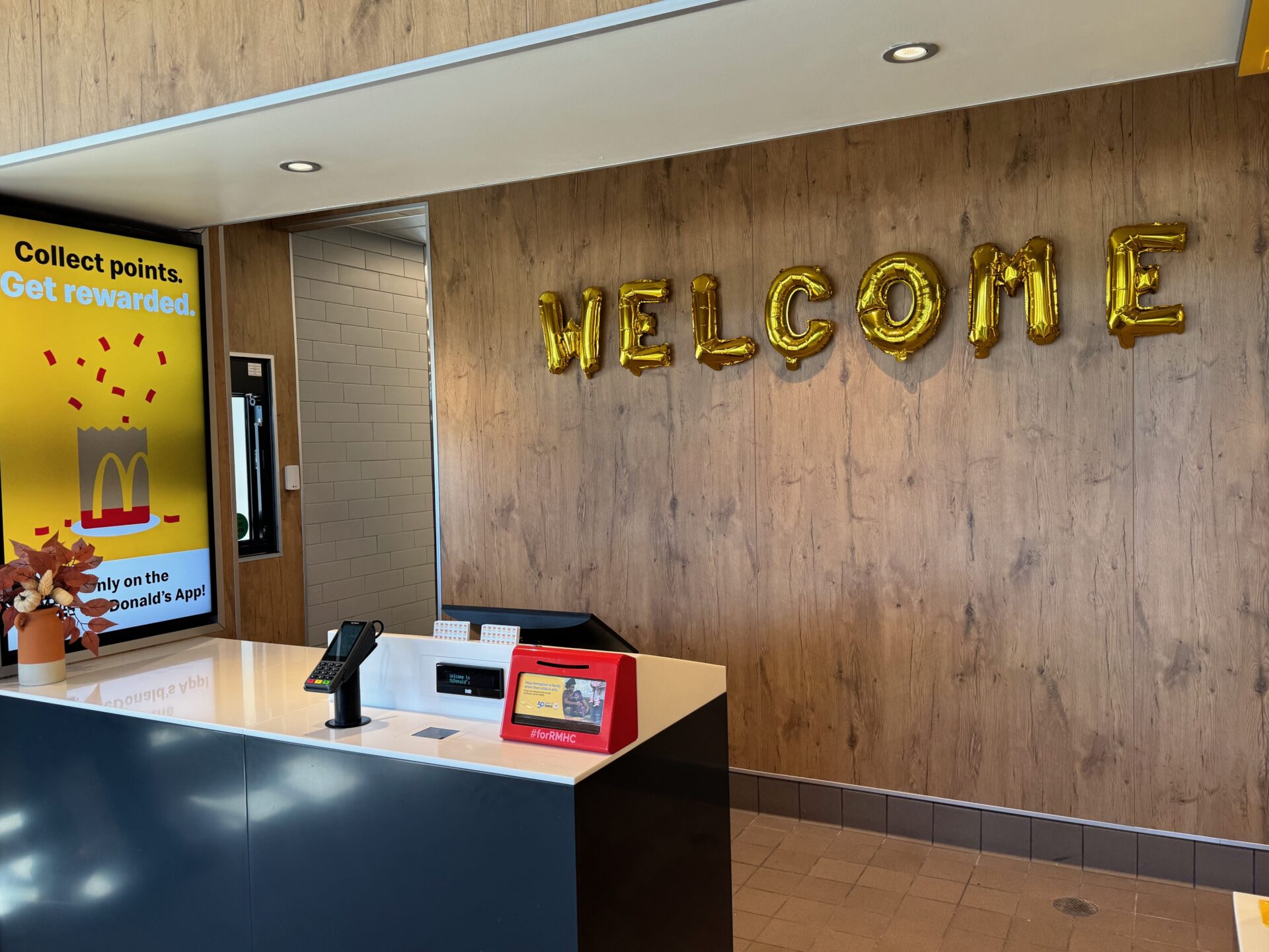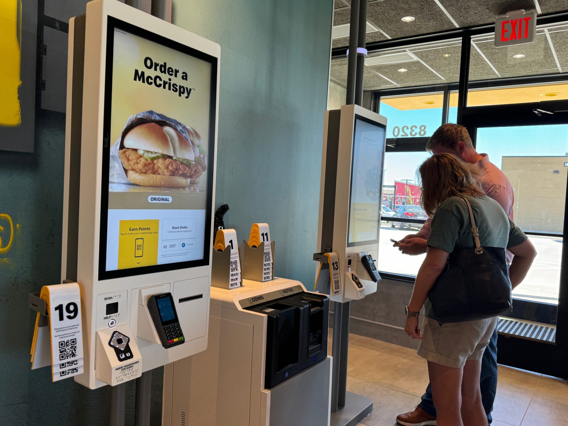 And there are no menu boards — only kiosks for ordering.