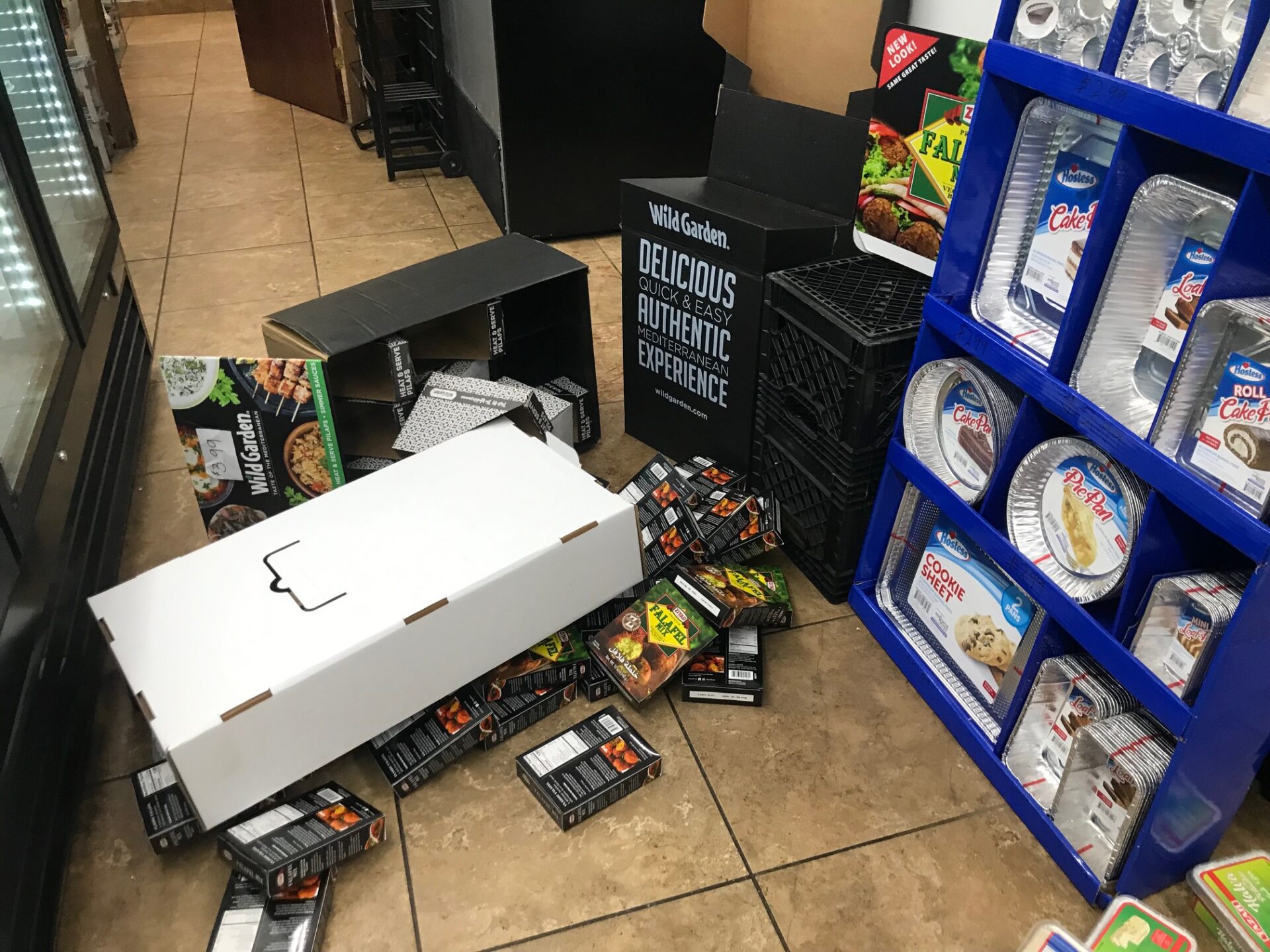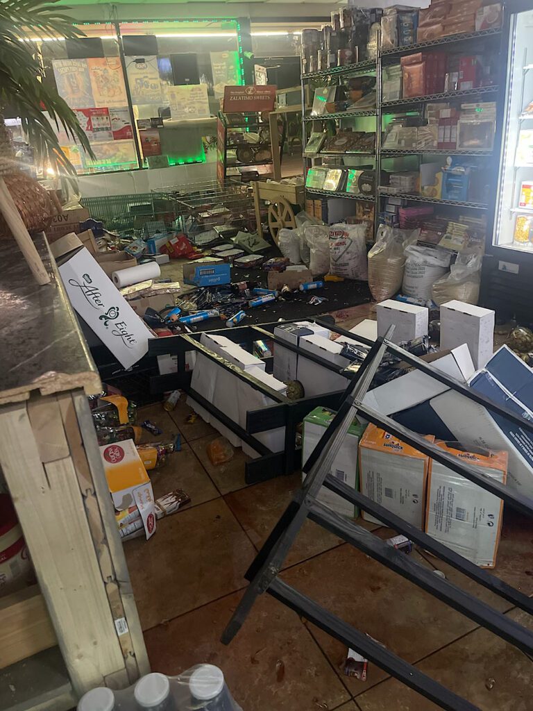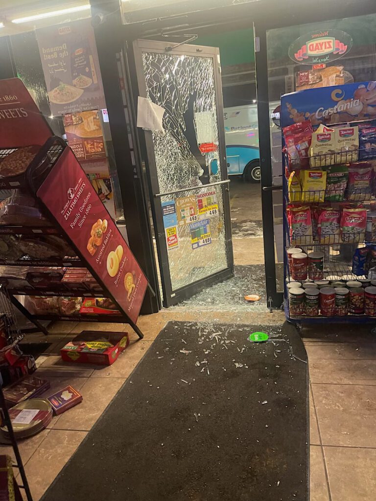“Maybe they meant to scare us off,” he said. “There’s a lot of inventory that’s destroyed, a lot of glass on the floor.”