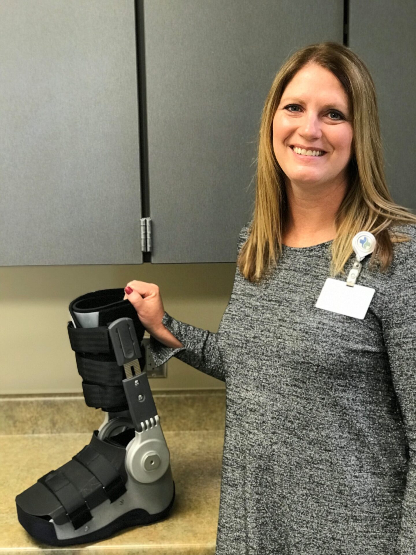 And she has plenty of ideas. One, an AFO, or ankle foot orthosis, with superior offloading developed for the bottom of the foot, is designed to help patients with diabetic foot ulcers but also can be used for those with foot fractures or orthopedic problems.
