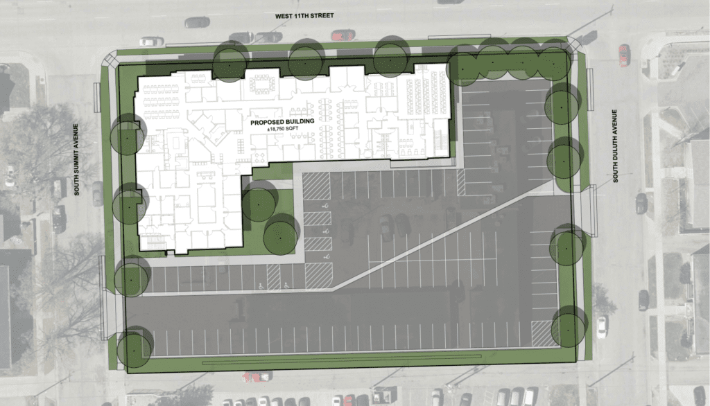 “We’re rezoning it from commercial to mixed-use,” said Luke Jessen, Lloyd Cos. vice president of development. “It falls in one of the corridors the city is pushing to convert to mixed-use zoning, which allows the building to be built closer to the property line and allows for more urban parking requirements and things of that nature.”
