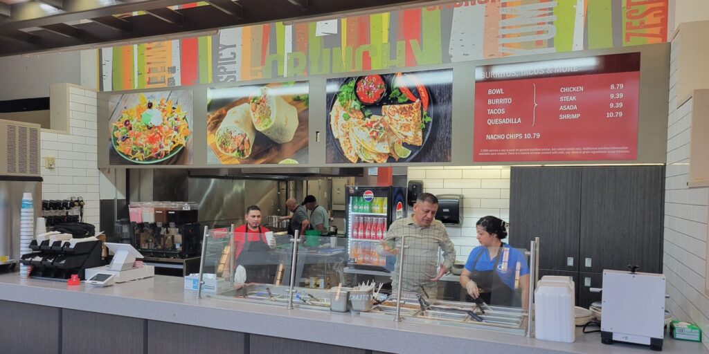 The regular menu will begin after that, featuring create-your-own burritos, bowls, tacos and quesadillas. Protein options include chicken, steak, shrimp and carne asada. Entrees come with nacho chips.