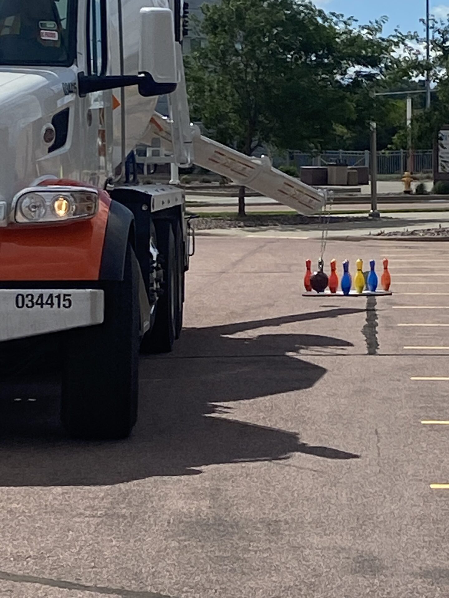 They drove the trucks through obstacles that involved backing through cones without hitting tennis balls on them or attempting to hit a bullseye with a plumb bob hanging off the back of the truck.