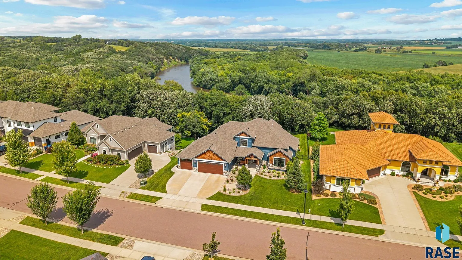 A gorgeous two-story walkout in northeast Sioux Falls is nestled on a lot filled with towering oak trees bordering the Big Sioux River.