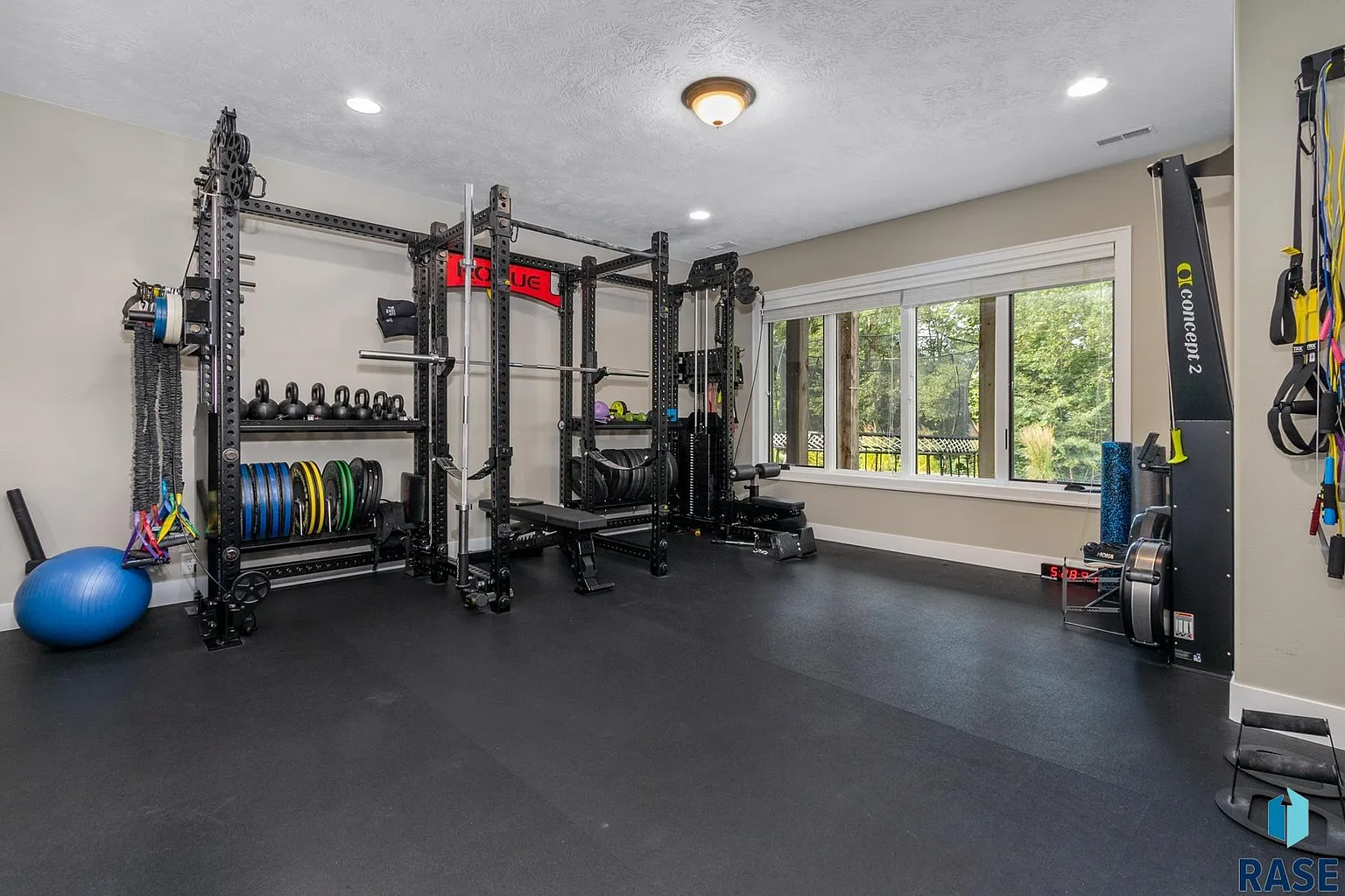 The lower level includes an additional bedroom that’s a great space for a fitness room, with an attached bath, along with a walk-out family room.